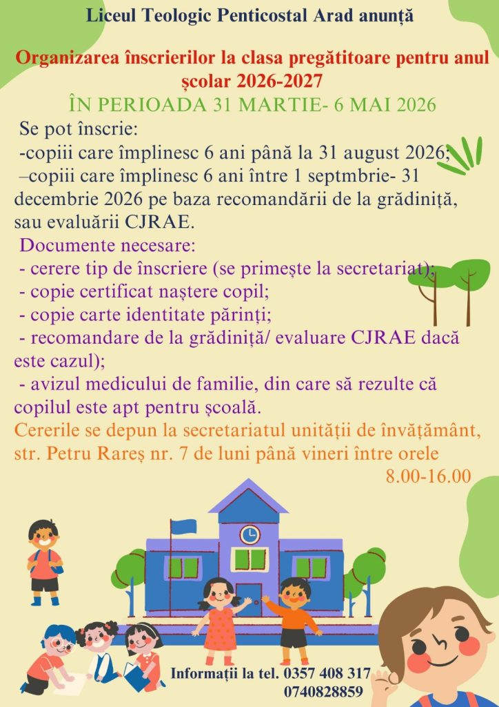 Inscriere Clasa Pregatitoare An Scolar 2026-2027